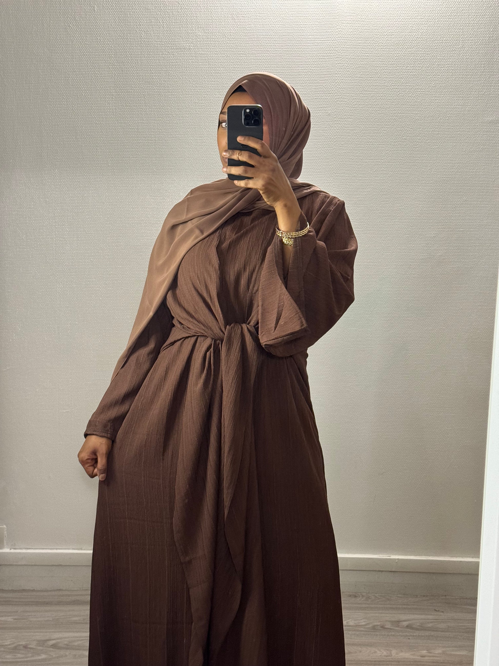 L'abaya VENEE très élégante cette ensemble ce porte de plusieurs manières différentes, elle permet donc d'être élégante de plusieurs façon.