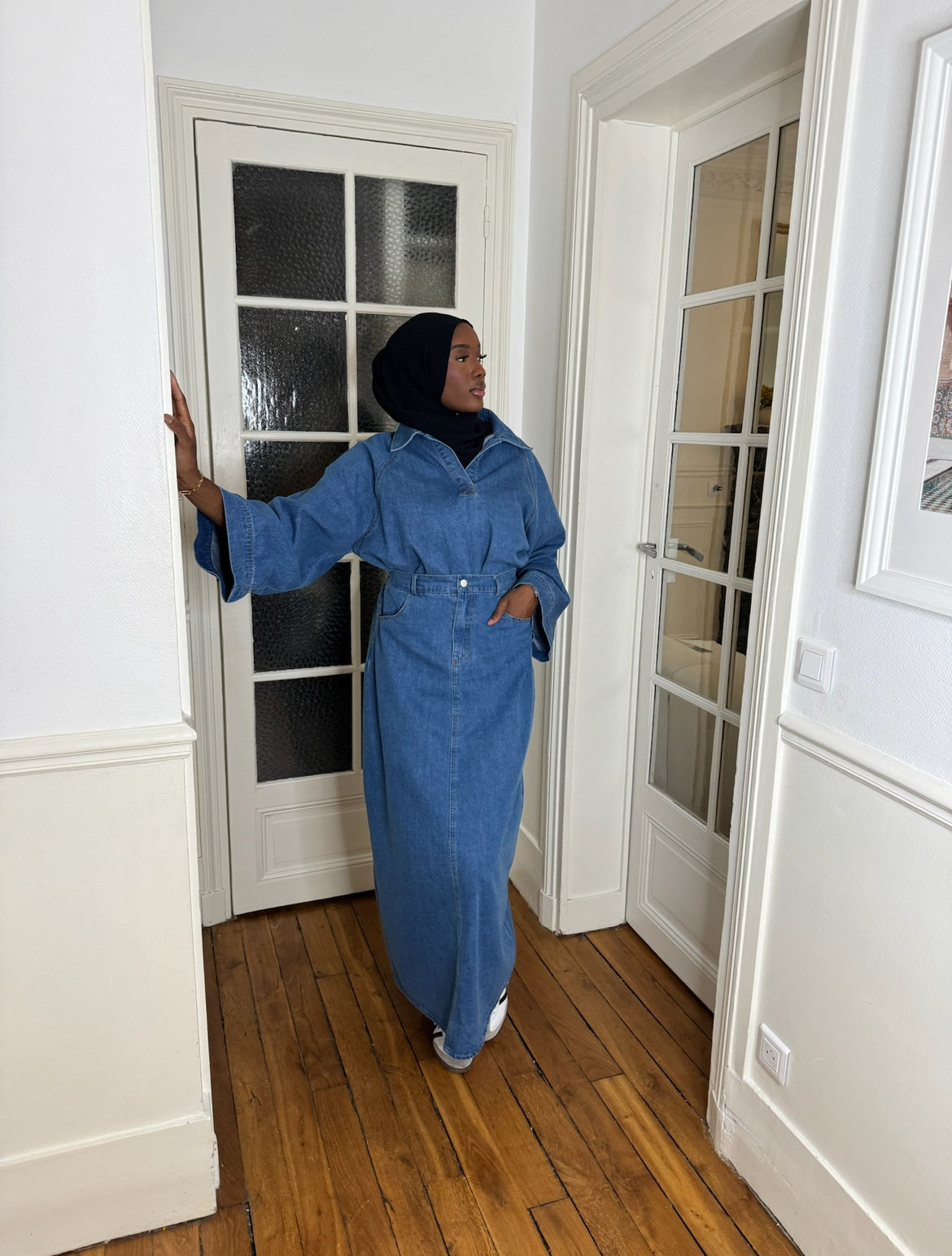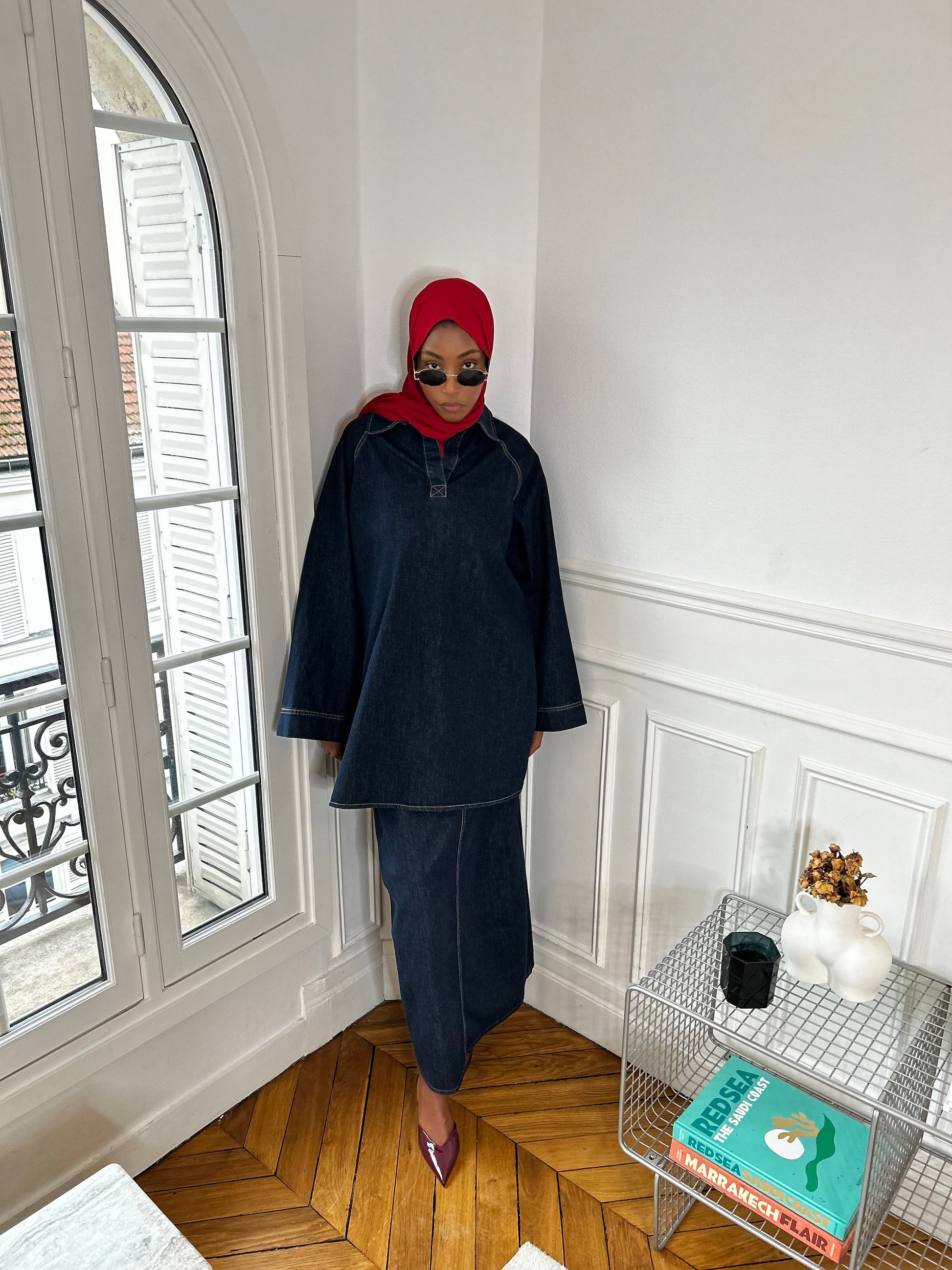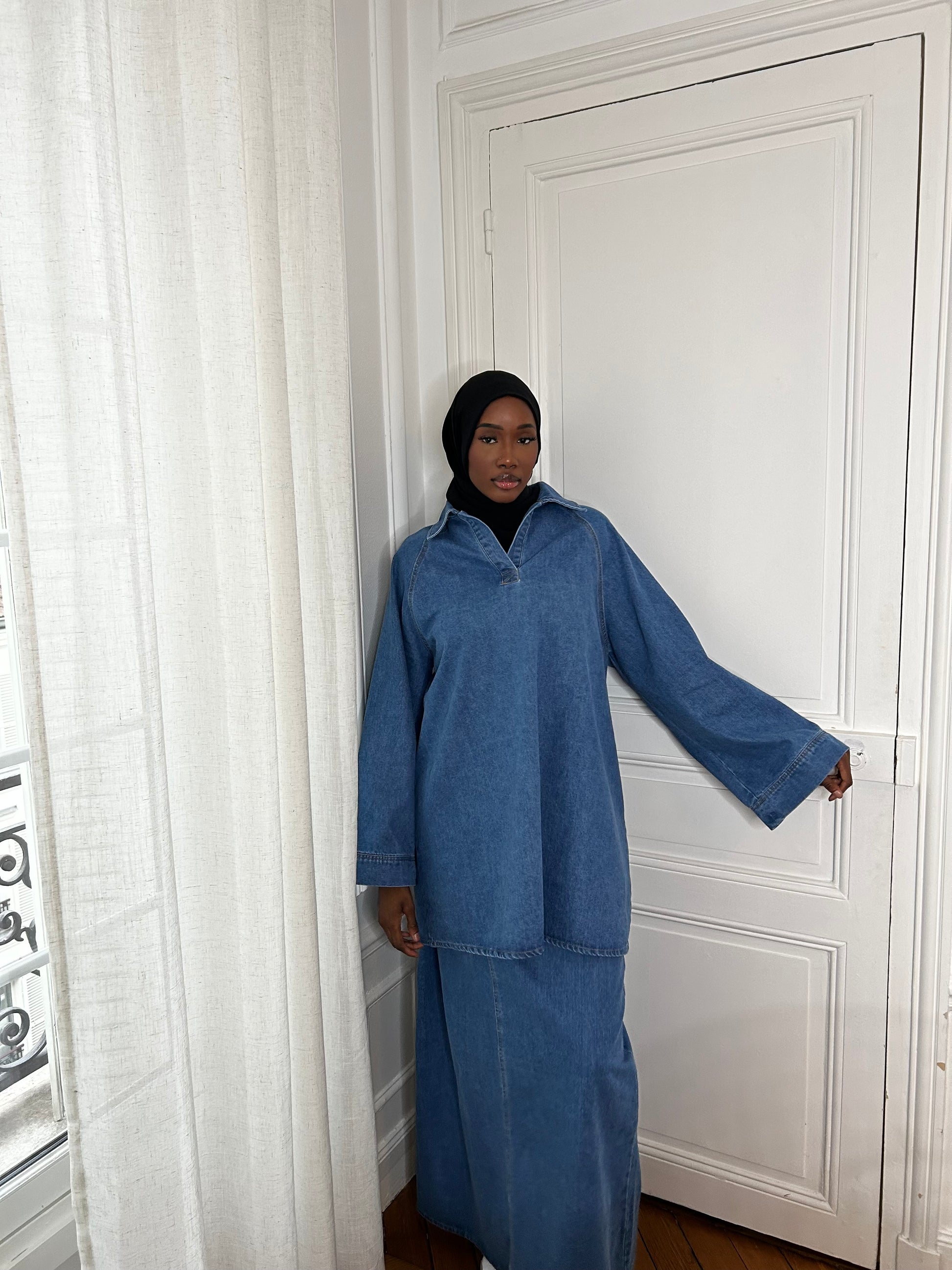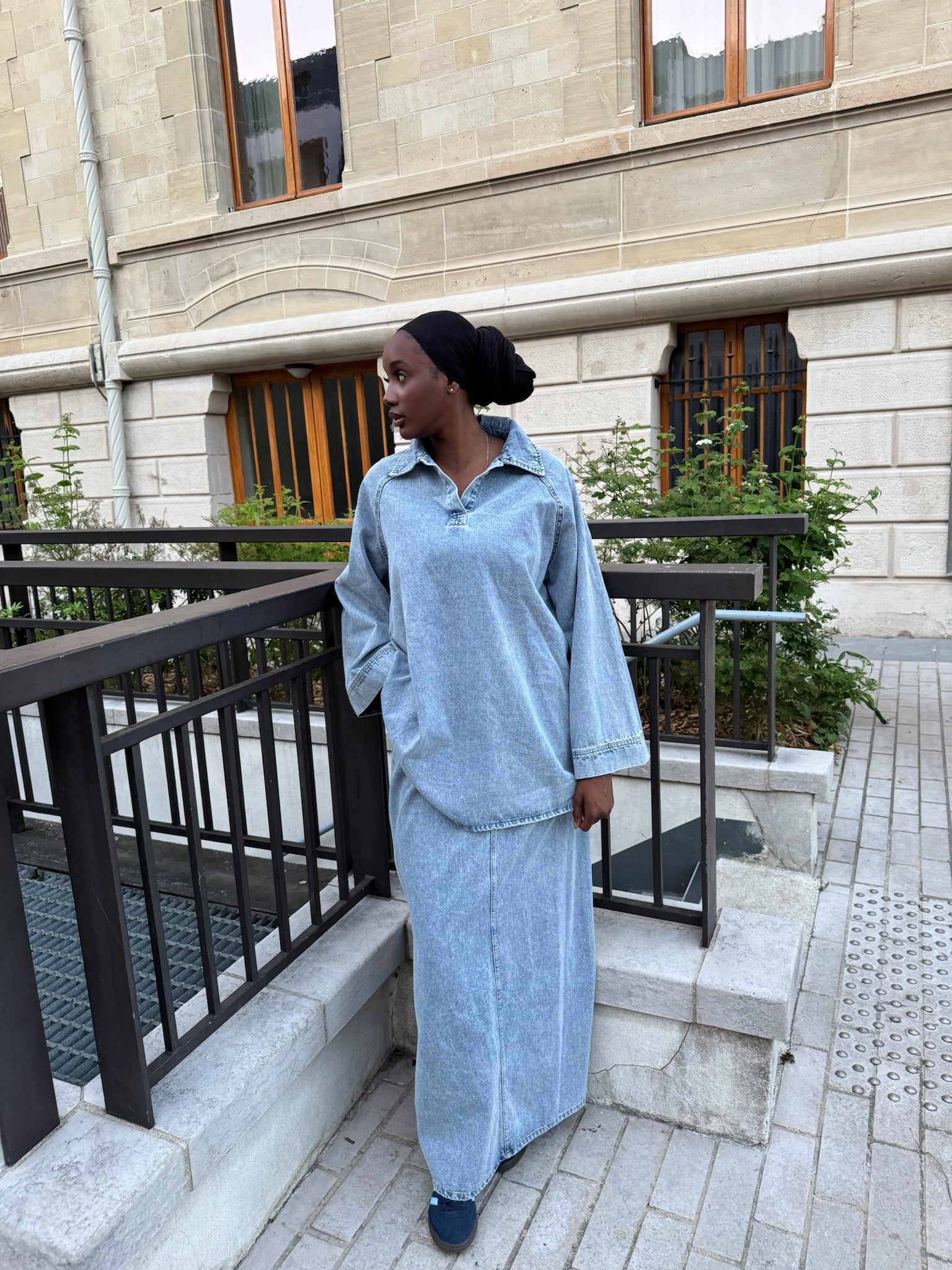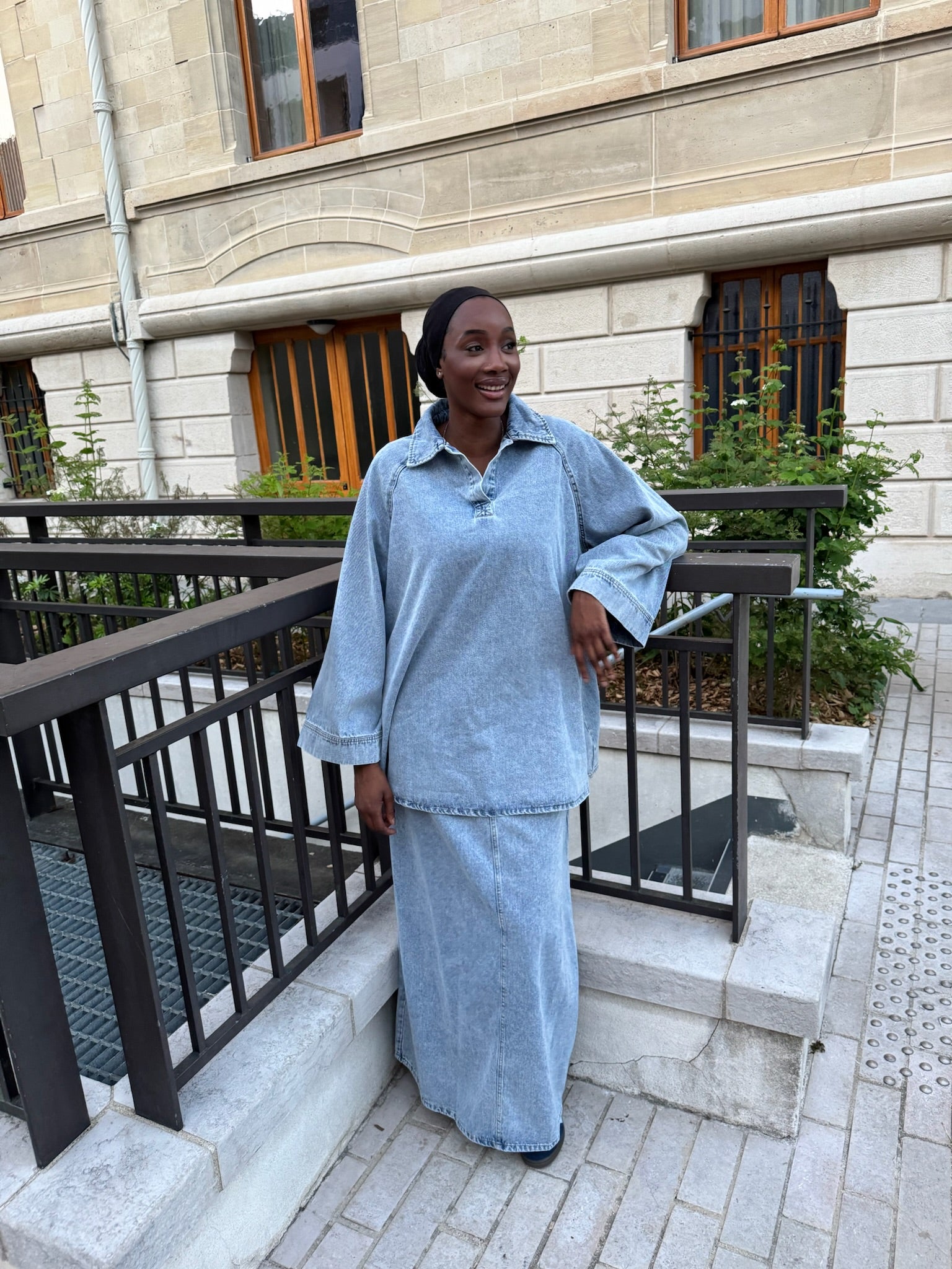 Cet Ensemble Fallee est un must-have pour toutes les femmes modernes. Le look intemporel de la jupe et de la tunique en jean est idéal pour toutes occasions, vous donnant un style chic et décontracté à la fois. Apportez une touche élégante à votre garde-robe avec cet ensemble polyvalent!