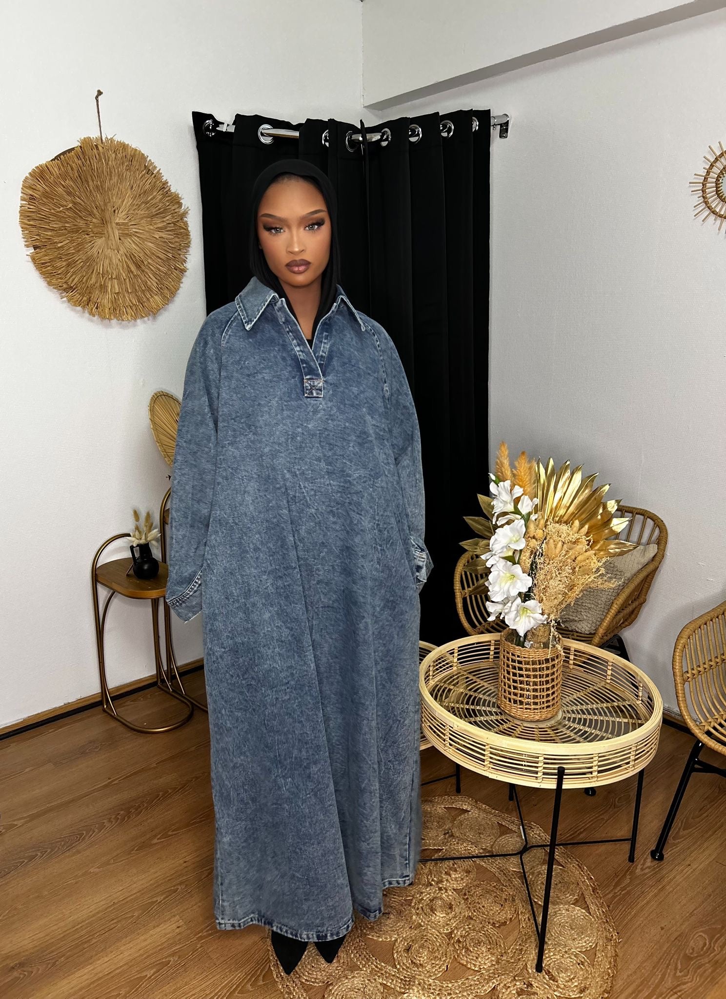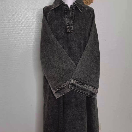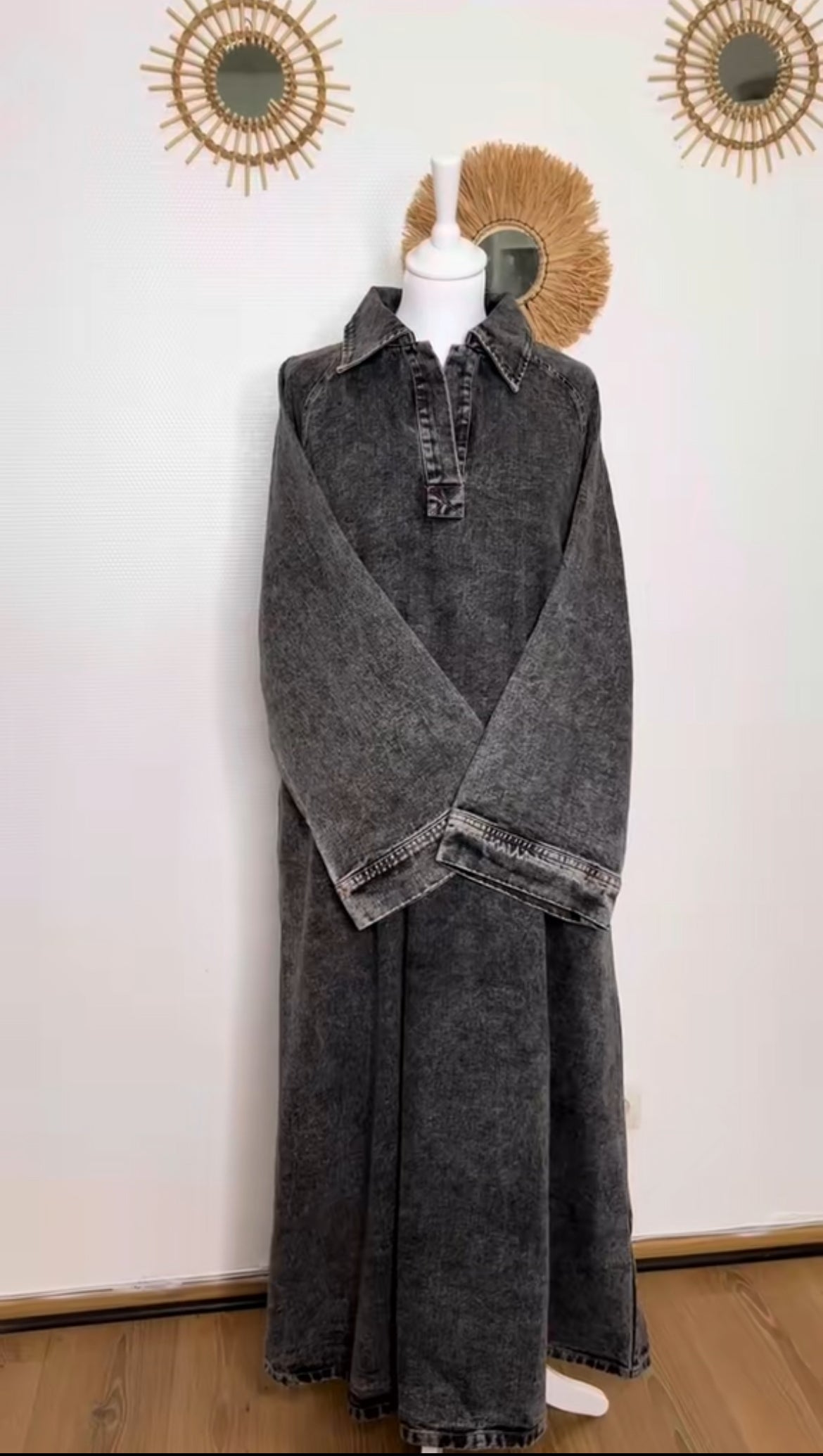 Robe longue en denim avec une coupe ample, dotée de manches larges.