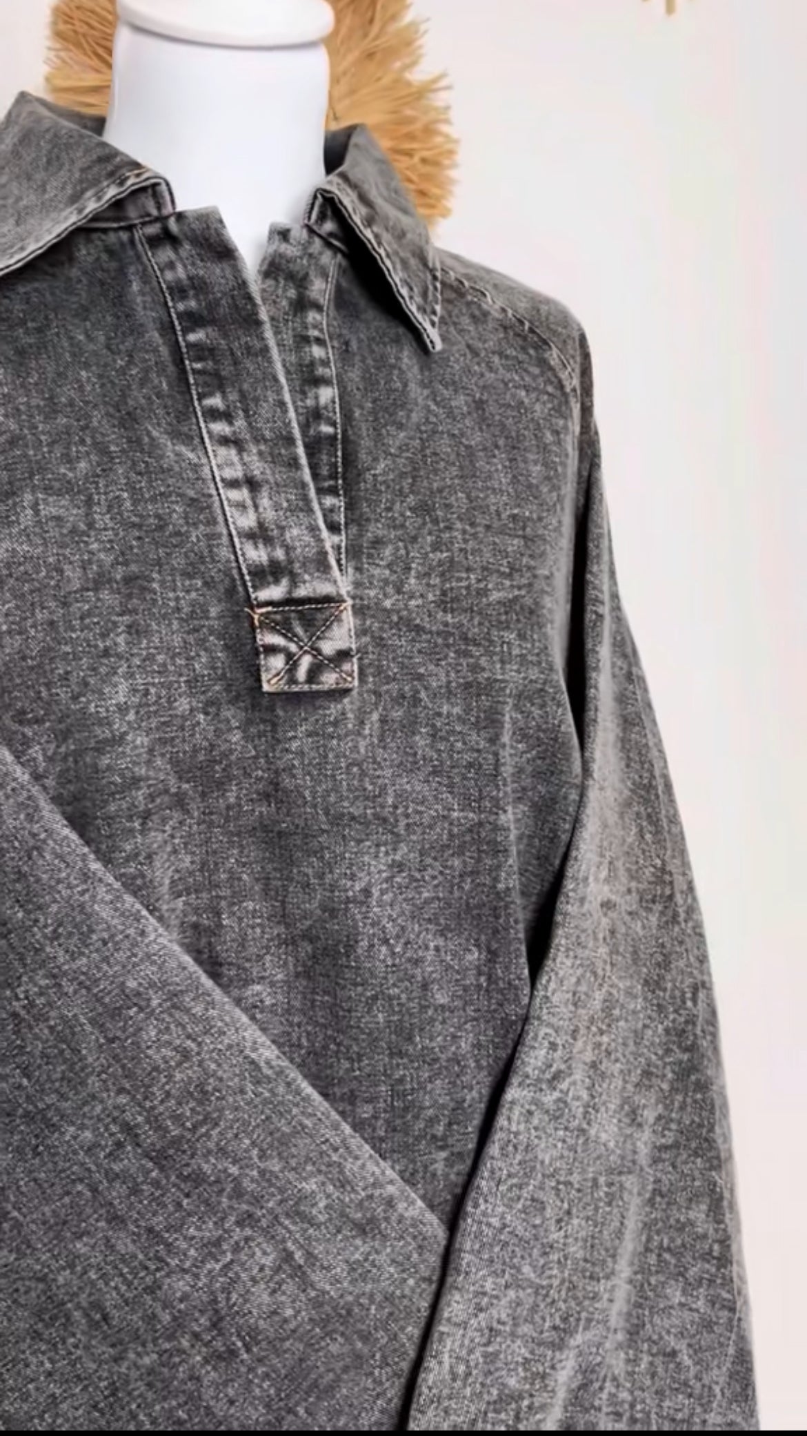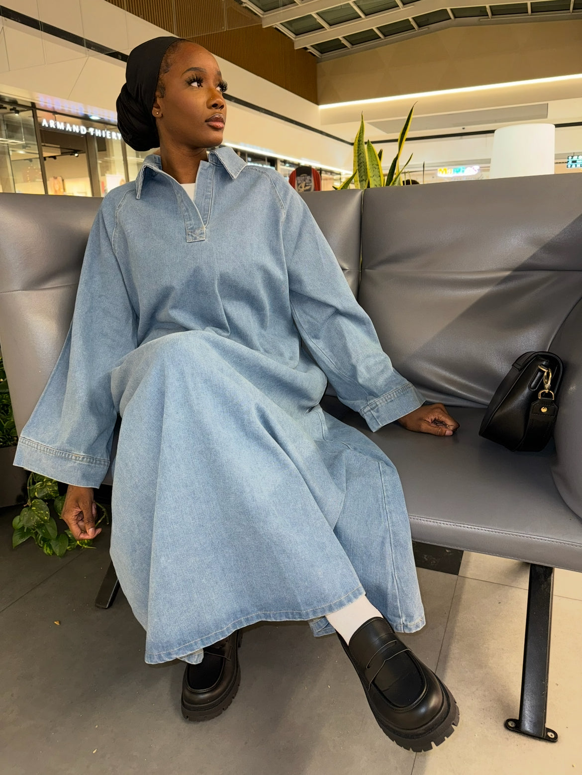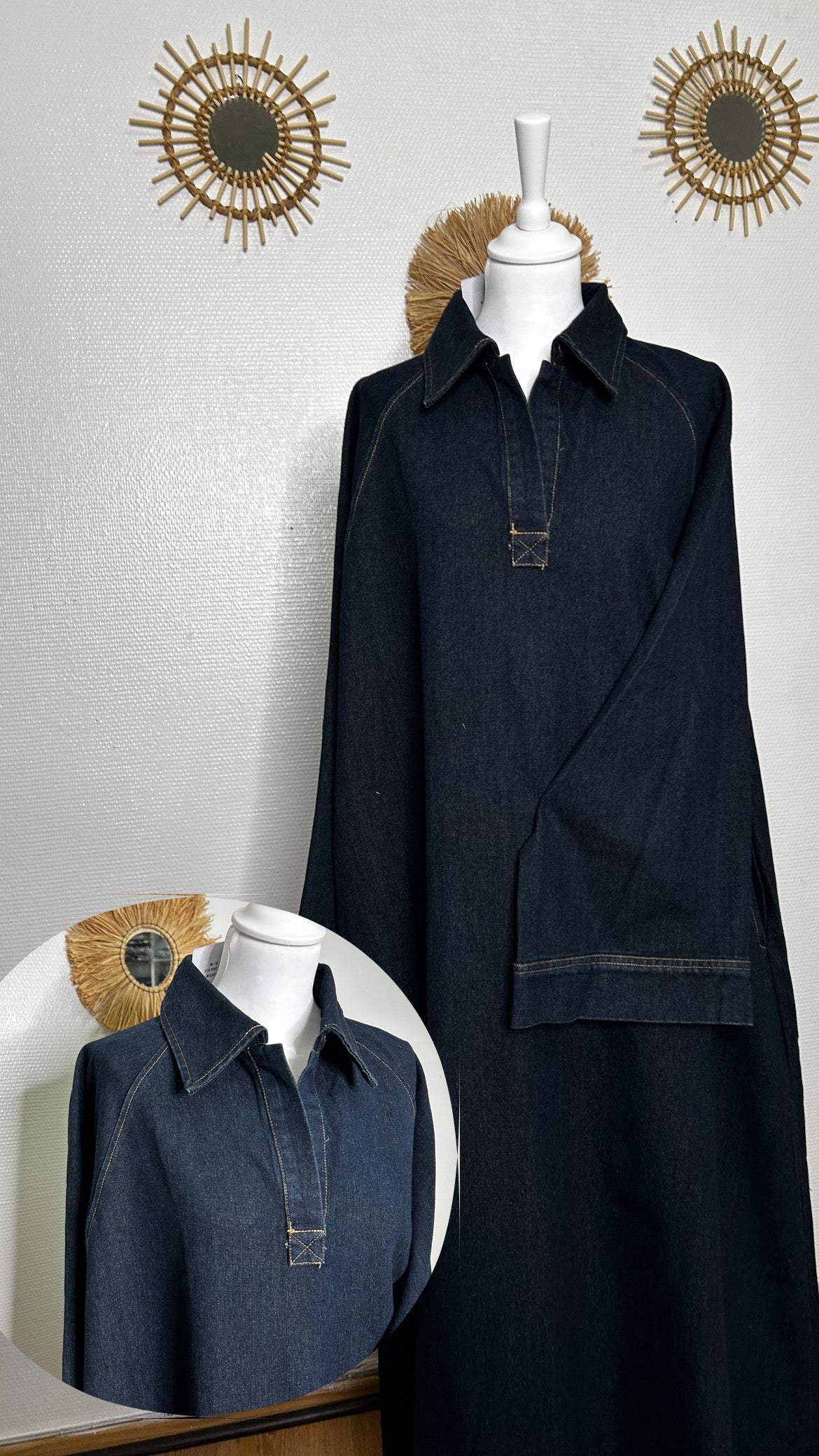 Robe longue en denim avec une coupe ample, dotée de manches larges.