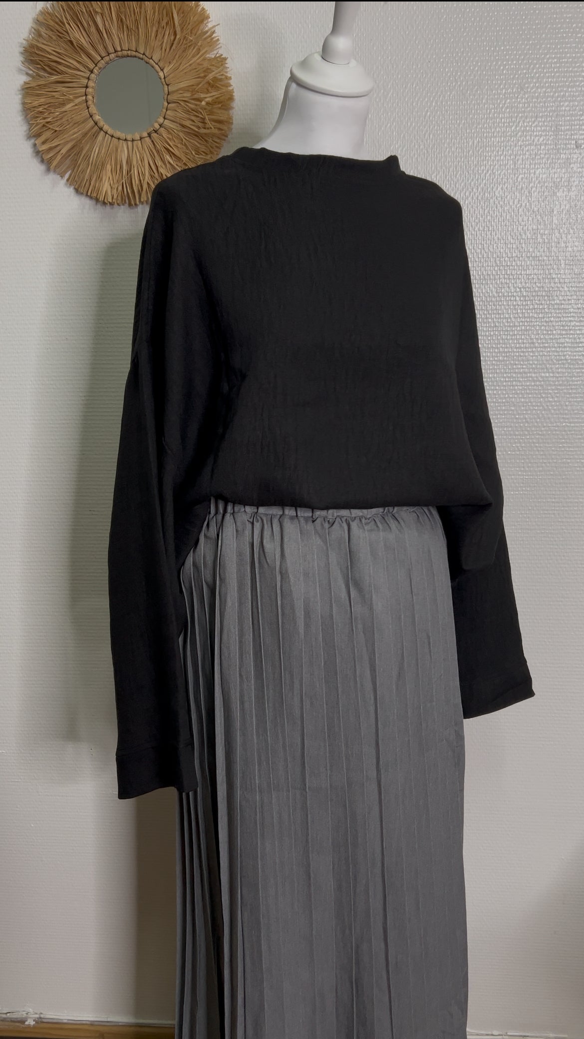 Cette jupe plissée fluide et légère apporte une touche chic à toutes vos tenues. Sa taille élastiquée assure confort et adaptabilité, et sa longueur convient aux personnes mesurant jusqu’à 1m80. Idéale pour toutes les occasions, elle se porte aussi bien avec un haut décontracté qu’une pièce sophistiquée.