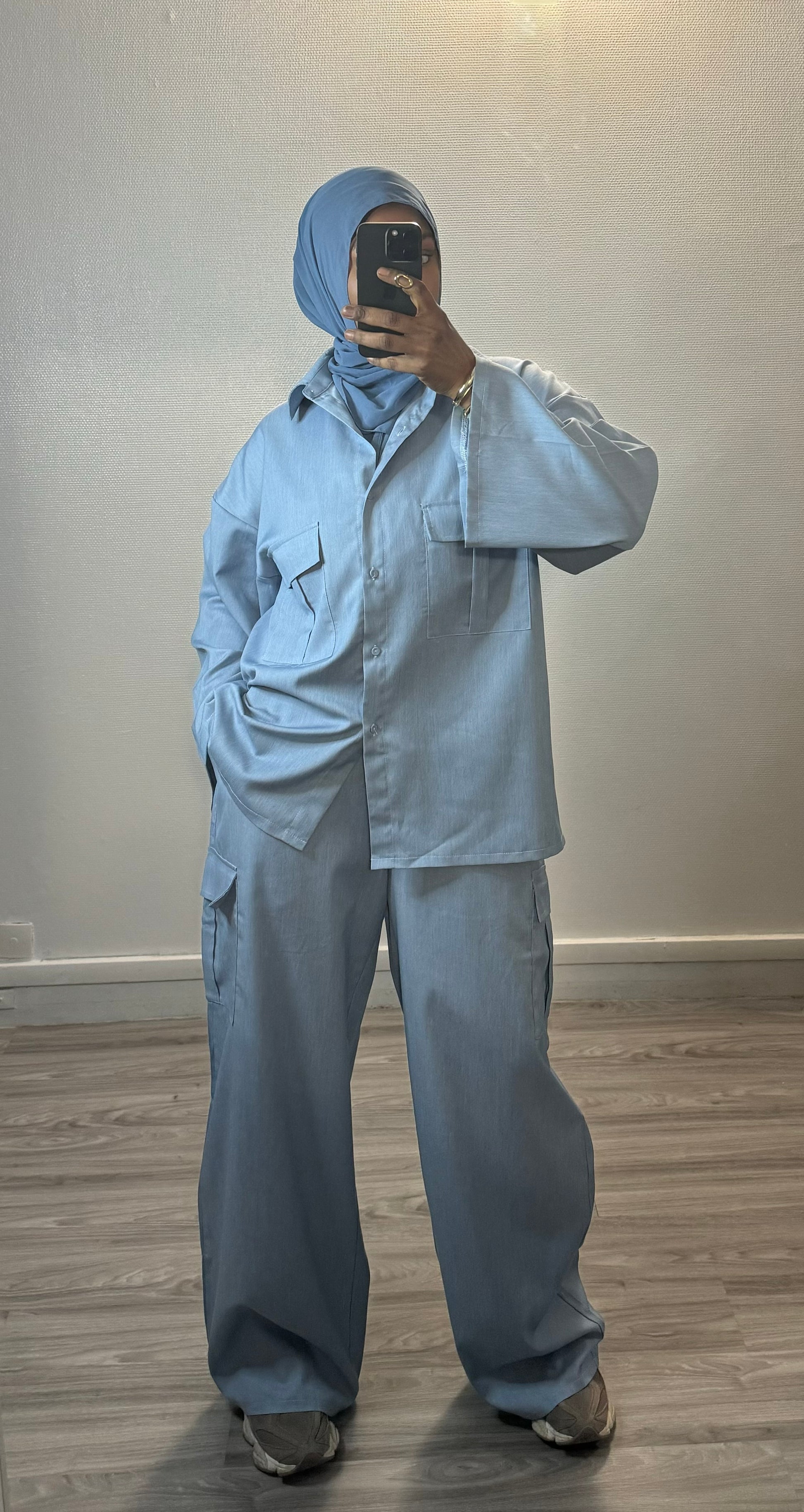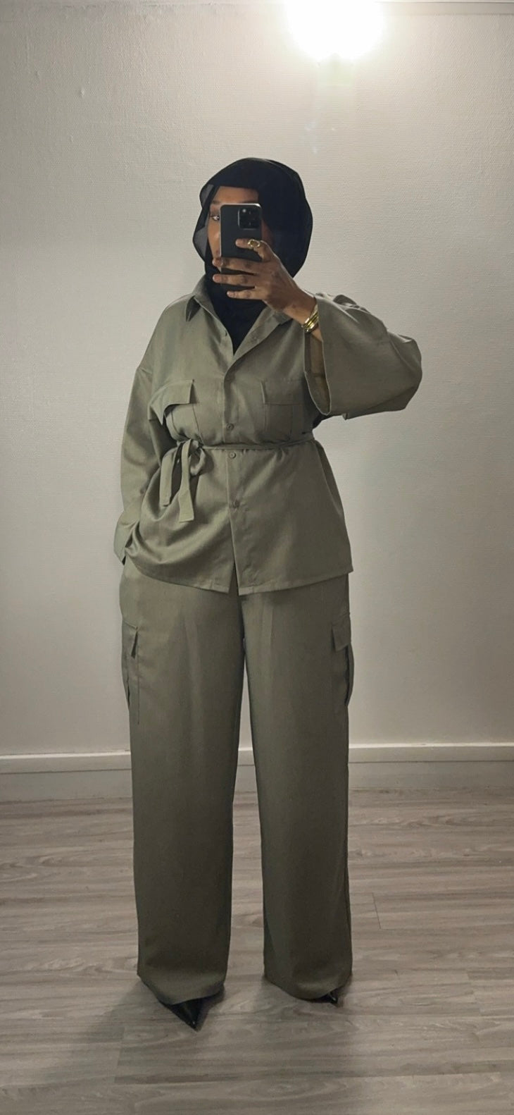 m.c. L’ensemble est très jolie pour un style décontracté ; la veste peut être porté avec une abaya ! O top je recommande